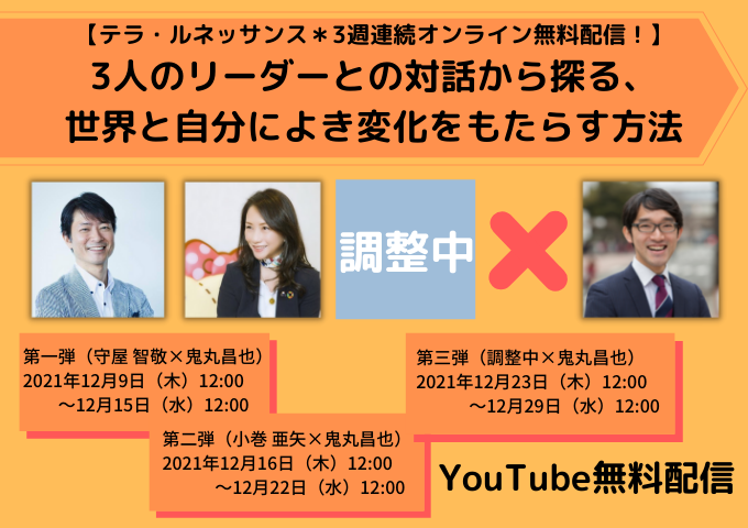 【3週連続オンライン無料配信!】3人のリーダーとの対話から探る、世界と自分によき変化をもたらす方法