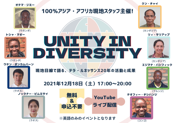 【12/18(土) YouTubeライブ配信】現地スタッフ主催の20周年企画!「Unity in Diversity」〜現地目線で語る、テラ・ルネッサンス20年の活動と成果〜