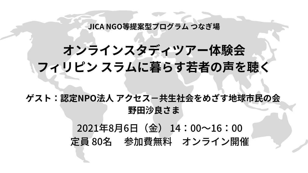 【京都SDGsラボ/8月6日】つなぎ場「オンラインスタディツアー体験会フィリピン スラムに暮らす若者の声を聴く」