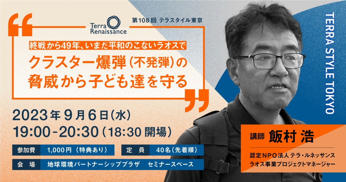 【 9/6(水)@東京 】終戦から49年、いまだ平和のこないラオスでクラスター爆弾(不発弾)の脅威から子ども達を守る(第108回 テラスタイル東京)
