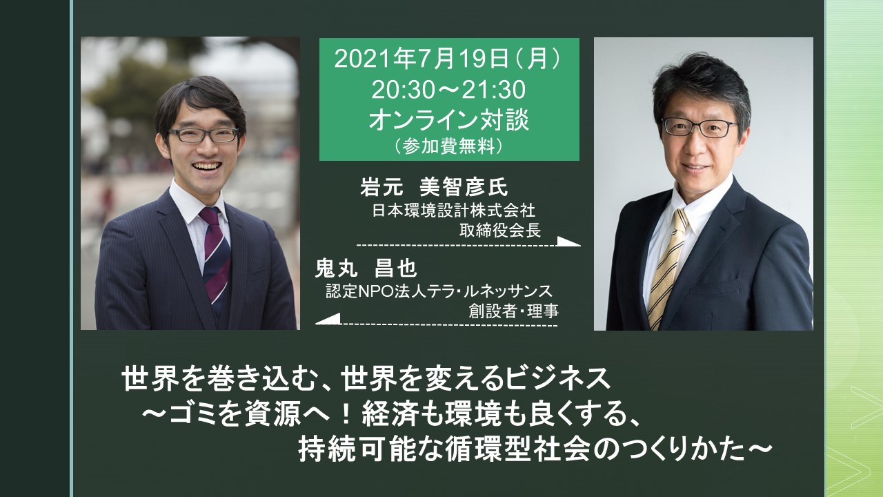 【7/19(月)夜/オンライン】世界を巻き込む、世界を変えるビジネス~ゴミを資源へ!経済も環境も良くする、持続可能な循環型社会のつくりかた~