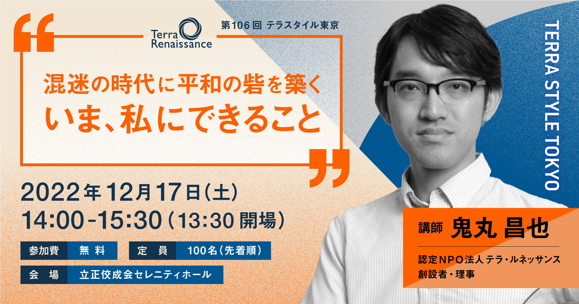 【 12/17(土)@東京 】混迷の時代に平和の砦を築く いま、私にできること(第106回 テラスタイル東京)
