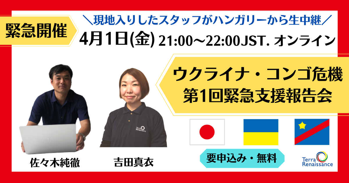 【4/1(金)オンライン】ウクライナ・コンゴ危機 第1回緊急支援報告会