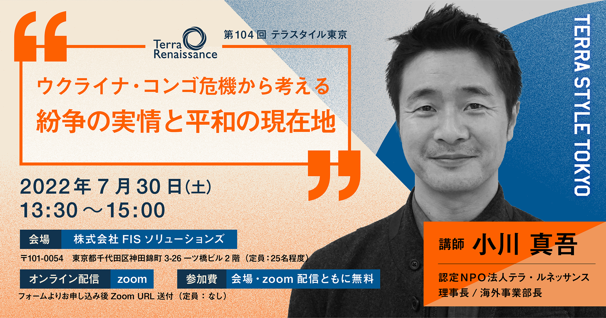 【 7/30(土) 東京 】ウクライナ・コンゴ危機・帰国報告会(第104回 テラスタイル東京)