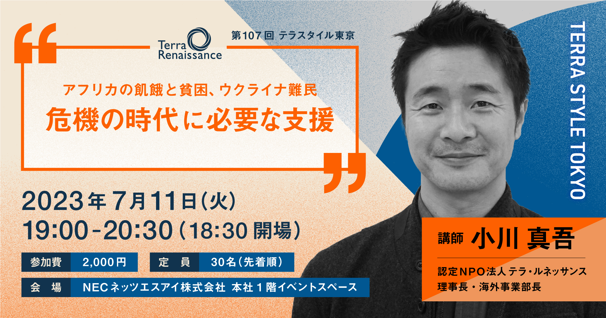 【 7/11(火)@東京 】アフリカの飢餓と貧困、ウクライナ難民 危機の時代に必要な支援(第107回 テラスタイル東京)