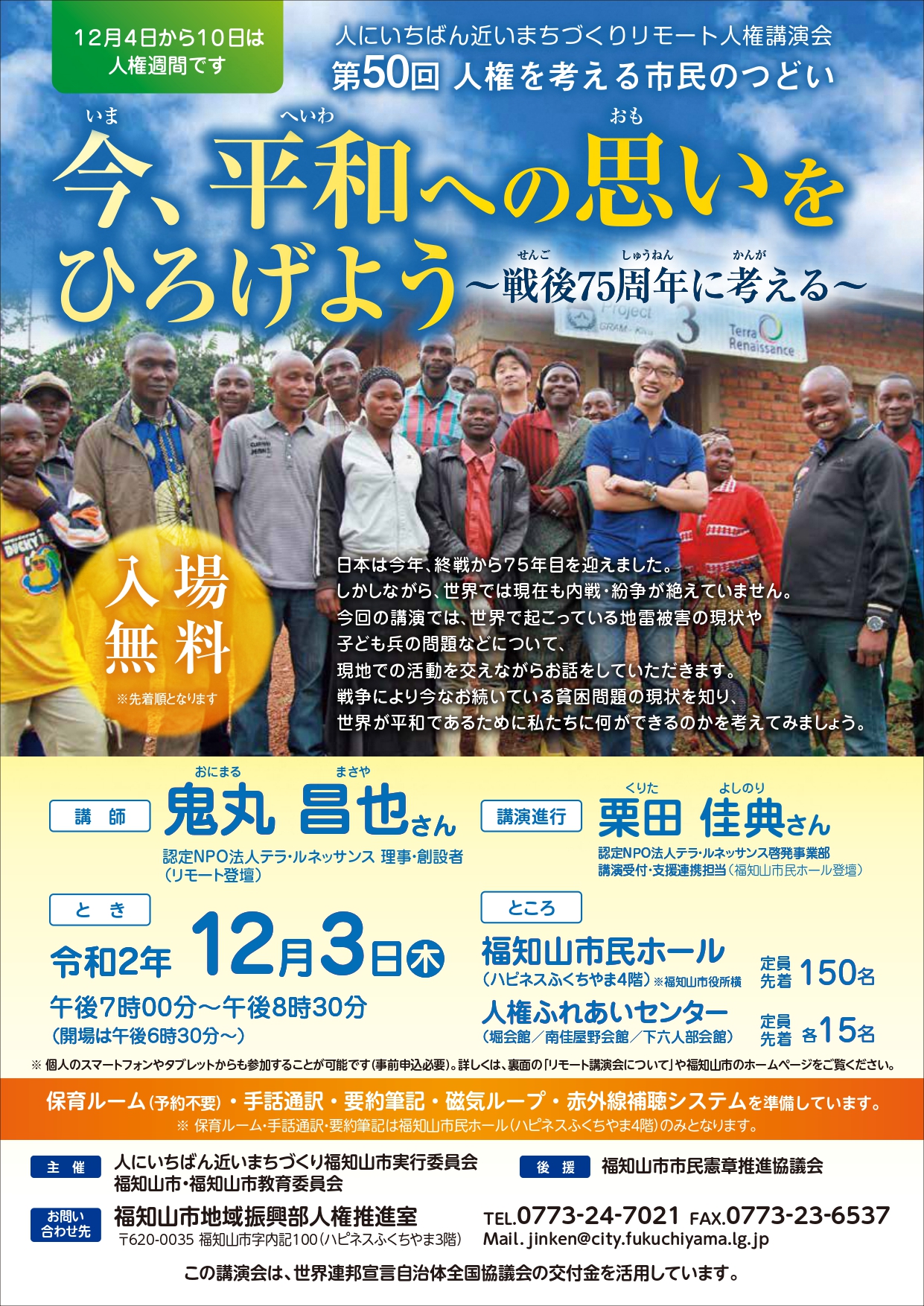 『第50回人権を考える市民のつどい』今、平和への思いをひろげよう ~戦後75周年に考える~