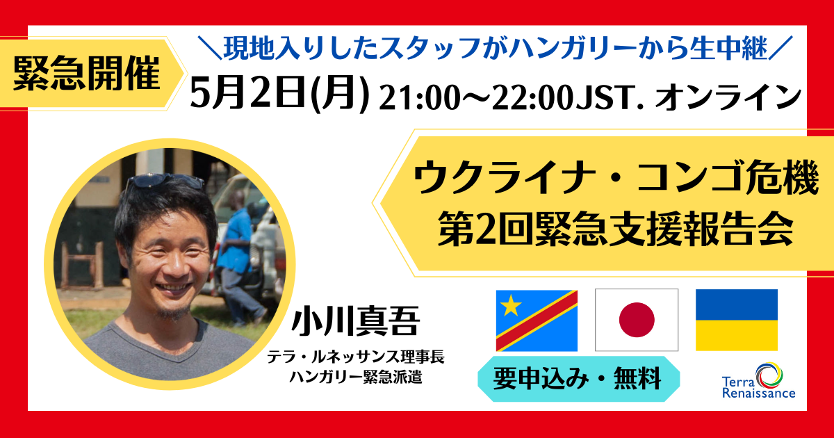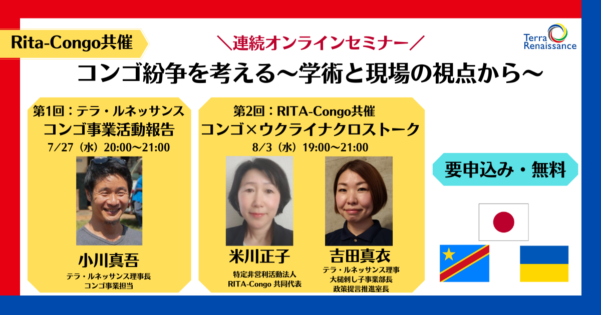 【連続オンラインセミナー】コンゴ紛争を考える〜学術と現場の視点から〜第1回:テラ・ルネッサンス コンゴ事業活動報告第2回:RITA-Congo共催 コンゴ×ウクライナ クロストーク