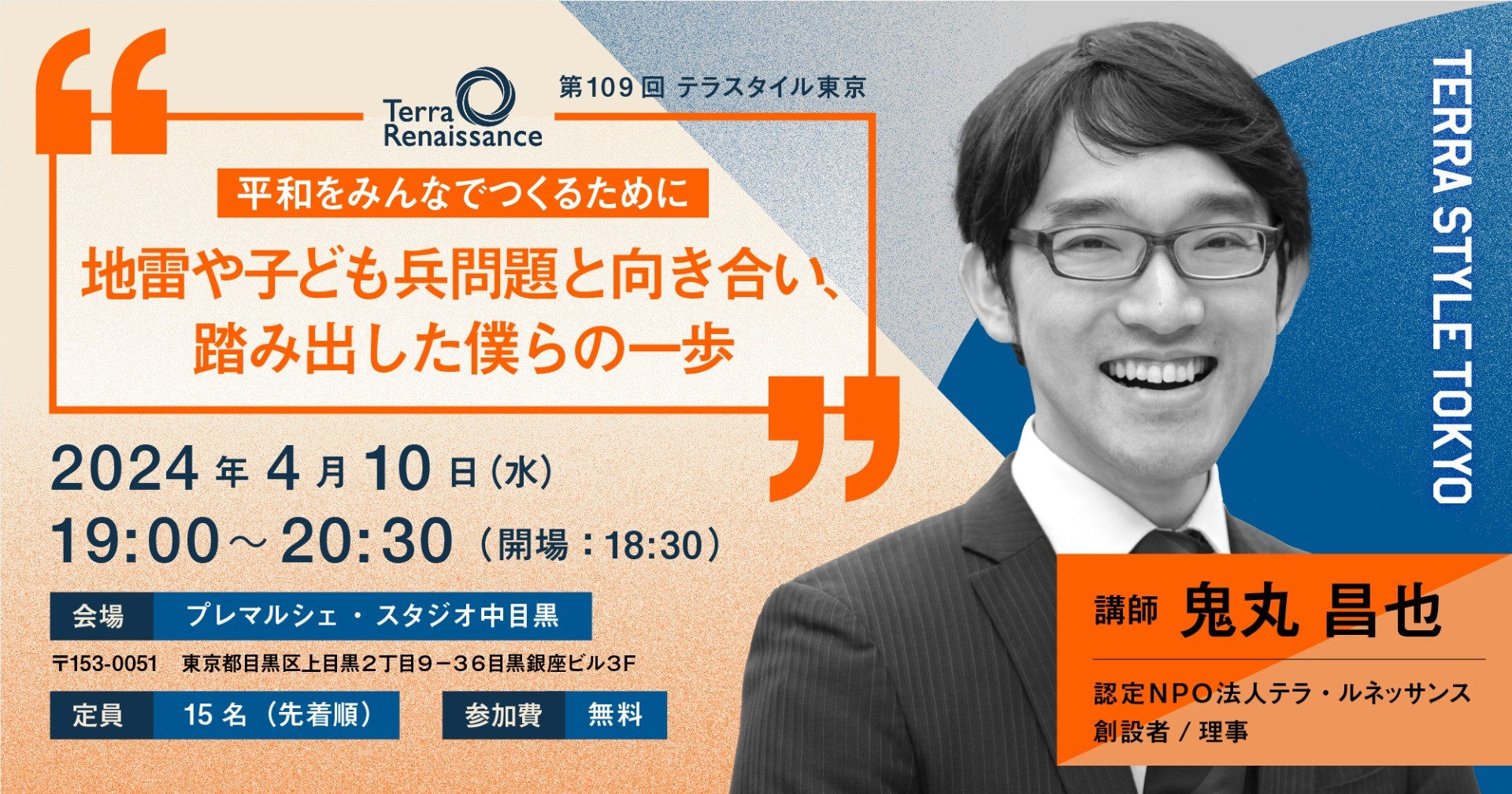 【4/10(水)@東京】平和をみんなでつくるために~地雷や子ども兵問題と向き合い、踏み出した僕らの一歩~(第109回 テラスタイル東京)