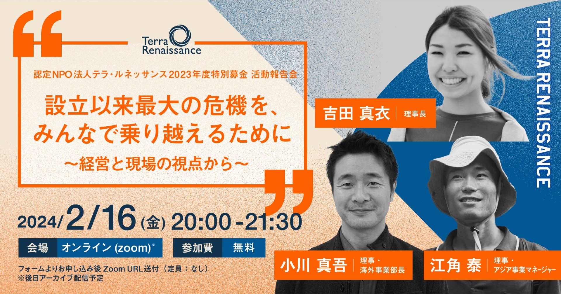 【2/16(金)@オンライン】テラ・ルネッサンス2023年度特別募金活動報告会