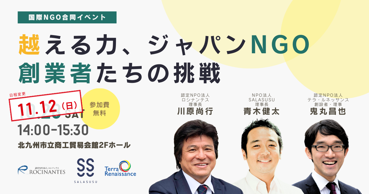 【11/12(日)@北九州 】国際NGO合同イベント – 越える力、ジャパンNGO創業者たちの挑戦