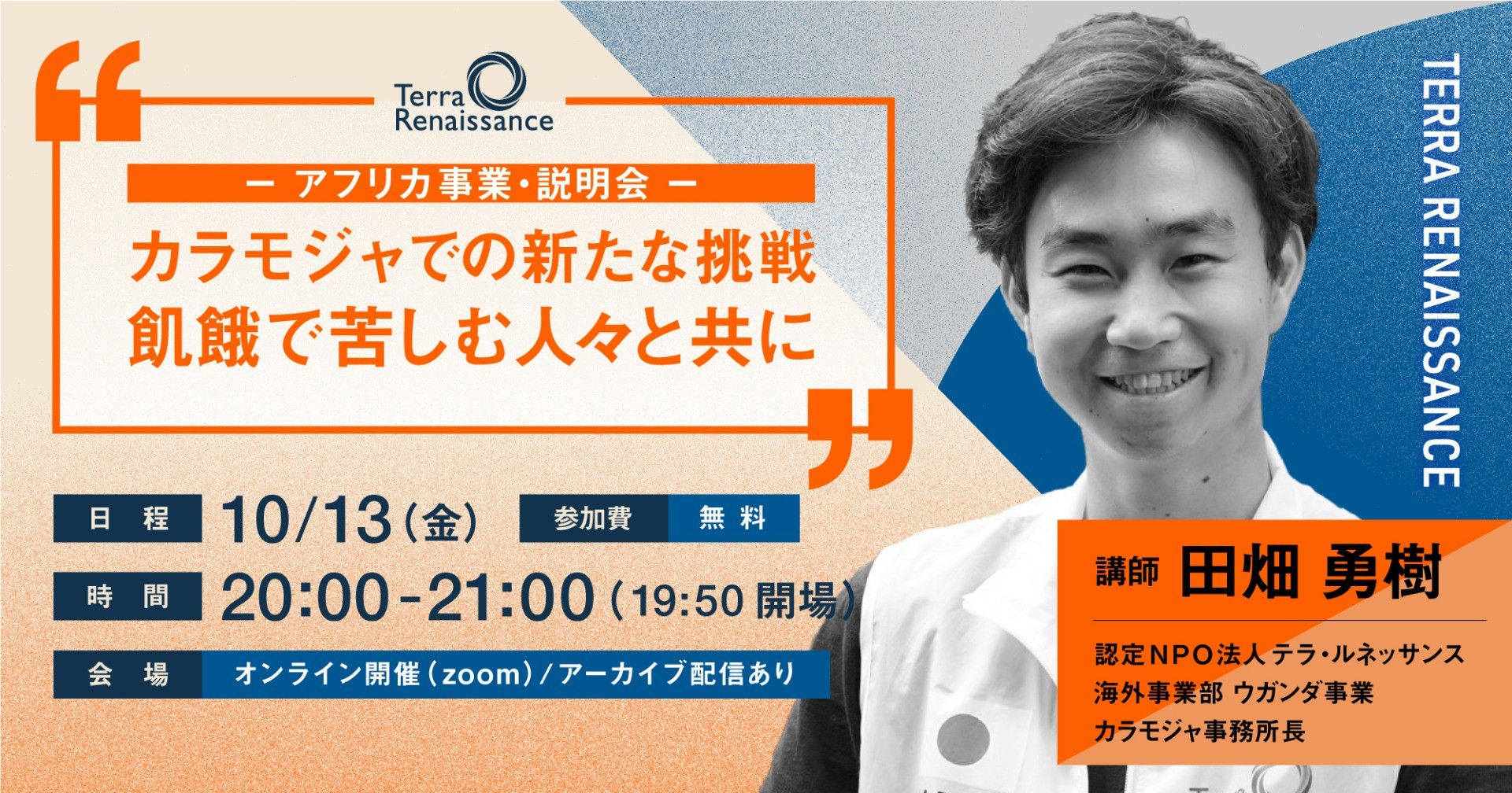 【 10/13(金)@オンライン 】カラモジャでの新たな挑戦、飢餓で苦しむ人々と共に
