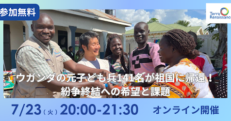 ・テラ・ルネッサンスが取り組む課題の一つである「子ども兵問題」について特化し、その背景にある紛争と先進国の暮らしとの関係を説明。一人ひとりの暮らしを変化させることで、紛争解決に貢献できると、日常からの行動(変化)を呼びかける内容。