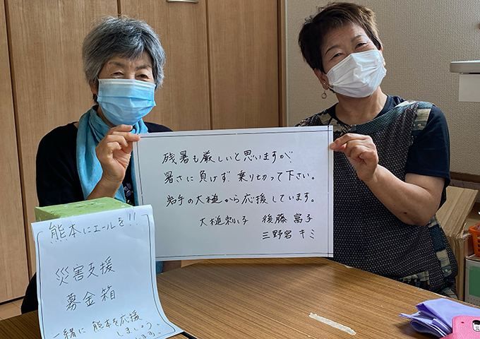 避難施設の難民に食料品や冬服を支援