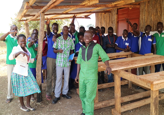 【職業訓練を受ける元子ども兵と海外事業部長 小川】