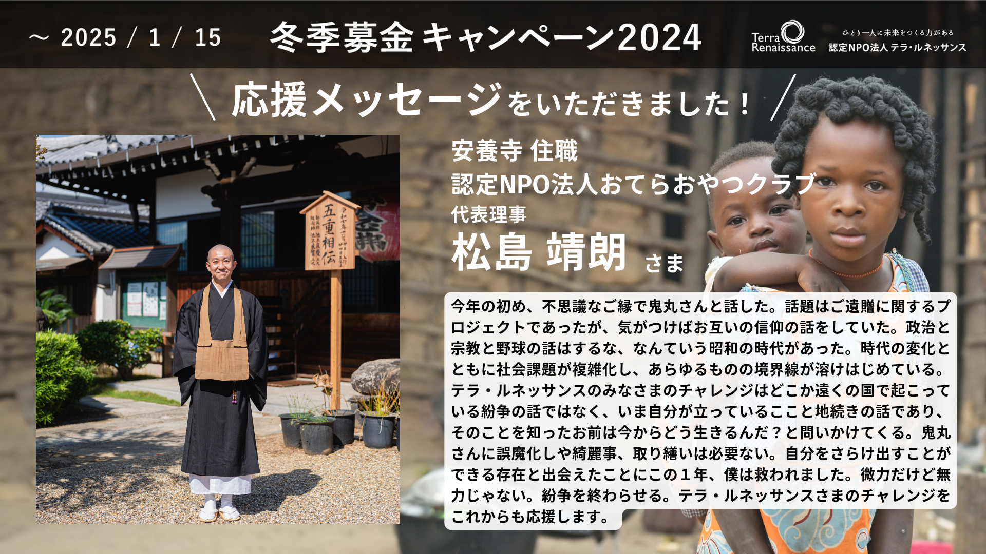 【応援メッセージ】安養寺住職/認定NPO法人おてらおやつクラブ代表理事 松島靖朗さま