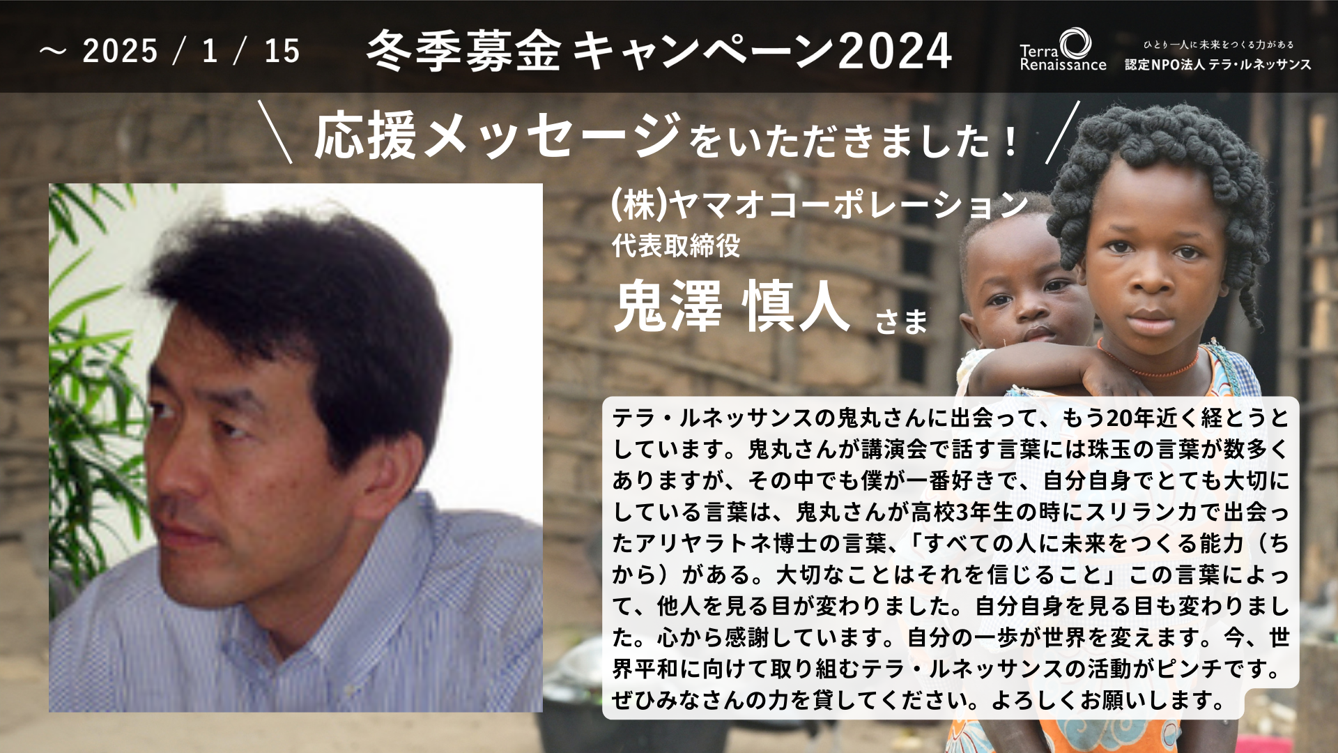 【応援メッセージ】株式会社ヤマオコーポレーション代表取締役 鬼澤慎人さま