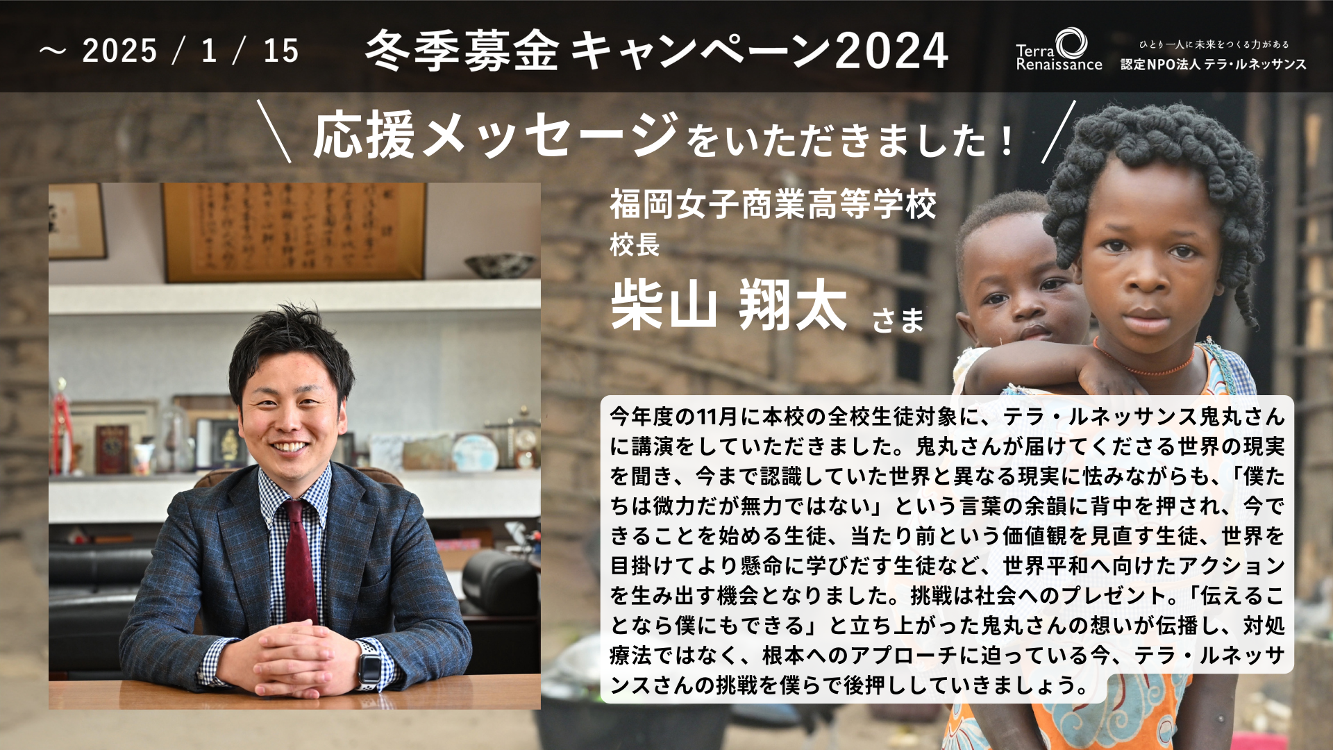 【応援メッセージ】福岡女子商業高等学校 校長 柴山翔太さま