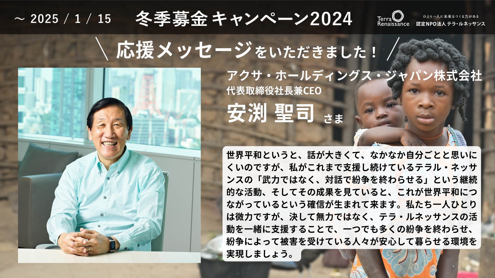 【応援メッセージ】アクサ・ホールディングス・ジャパン株式会社 代表取締役社長兼CEO 安渕聖司さま