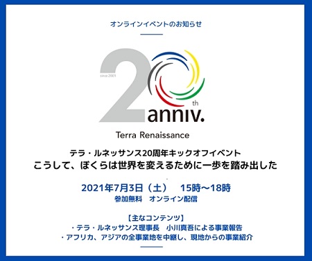 日本と世界をつなぐ 国際協力現場のアフリカ・アジアと生中継!テラ・ルネッサンス20周年記念キックオフイベント開催