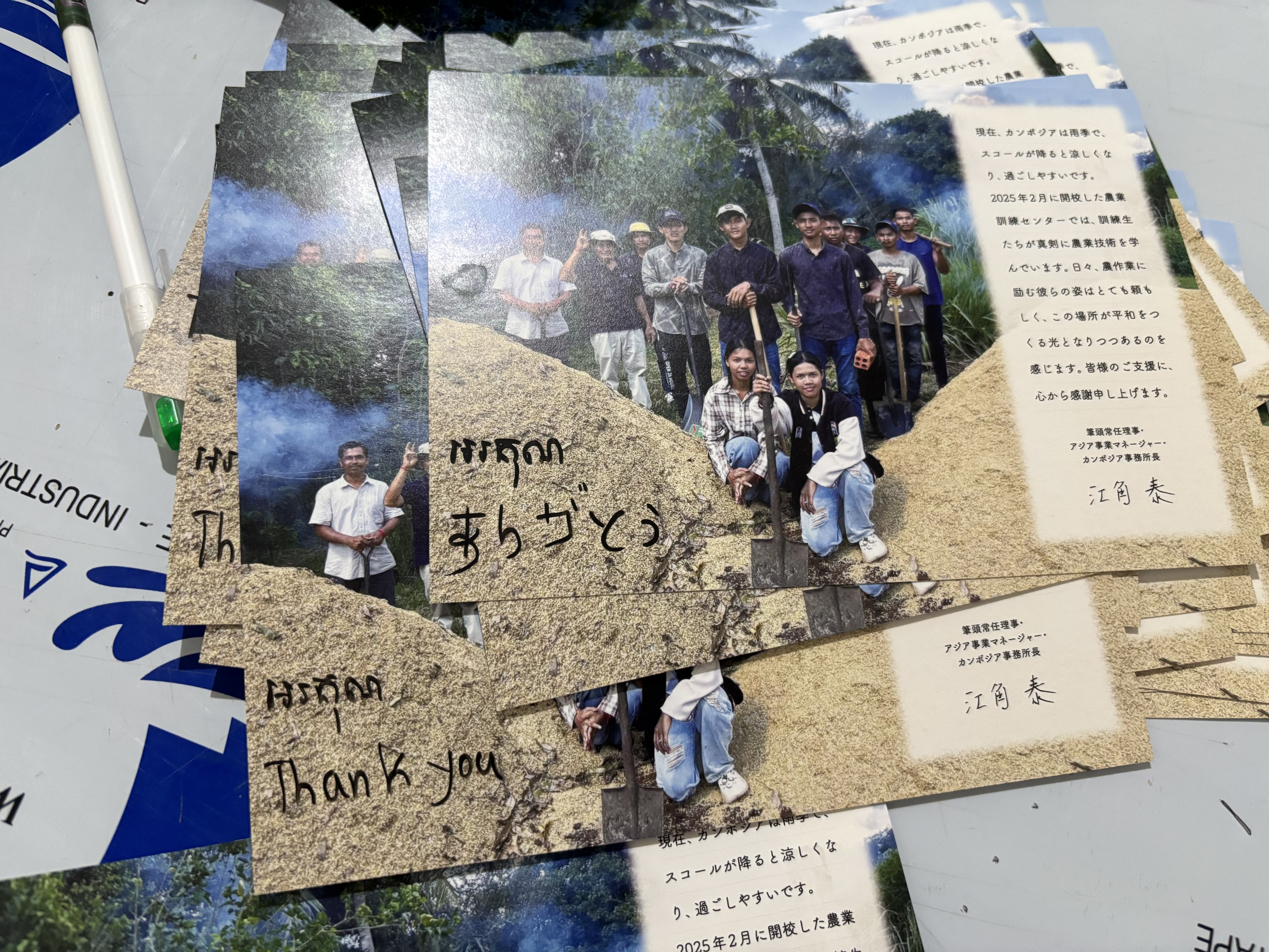 この度は、カンボジアで農業を学ぶ貧困層の若者(訓練生)たちから、直接皆さまへ感謝の気持ちを込めたポストカードをお届けすることができ、私たちスタッフ一同、胸があたたまる想いです。