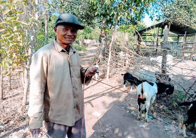 ↑家族で協力してヤギを飼育するサム・コムさん(赤ちゃんを抱く写真中央の女性)の世帯