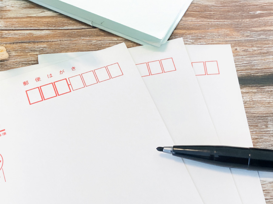 集めたハガキを封筒または段ボール箱などに入れ、下記までお送りください。